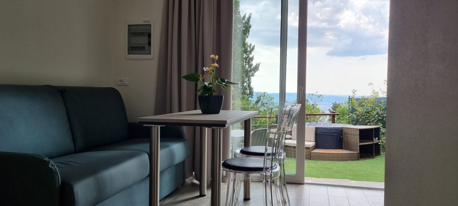 À l’extérieur, un jardin privé aménagé vous attend — l’endroit idéal pour passer des soirées tranquilles en plein air et vous détendre dans le bain à remous , disponible dans ce type d’hébergement.